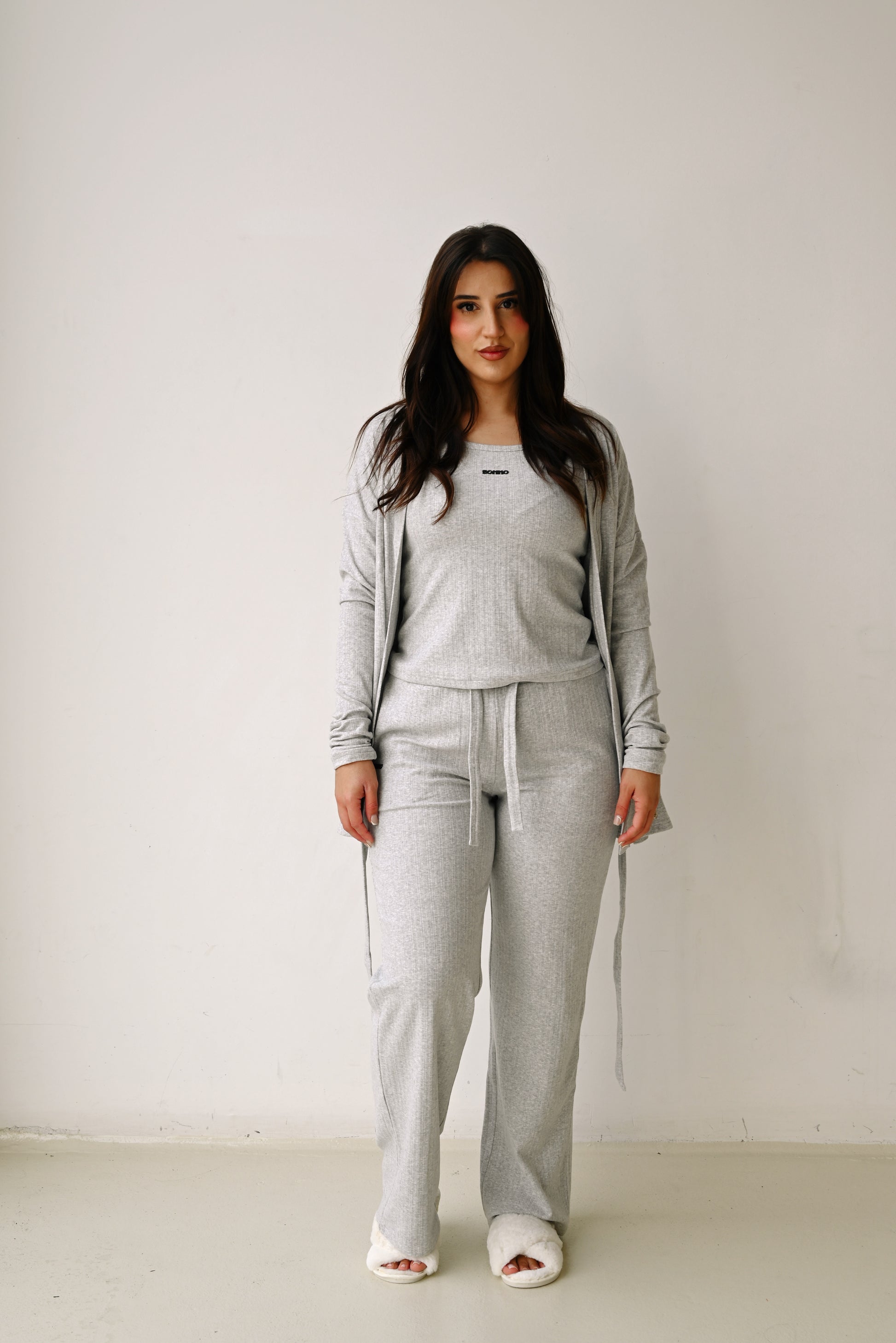 Introducing the Butter Set — the ultimate in luxe lounging and sleepwear. Crafted from our iconic ultra-soft, buttery fabric, this three-piece set includes full-length pants with a comfortable waistband, a flattering scoop-neck tank, and a cosy cardi designed for effortless layering. Each piece hugs in all the right places, offering all-day comfort and a chic, flattering fit. Thoughtful details like an adjustable self-tie belt, functional side pocket at the inseam, and our signature 3D rubber logo elevate this set to everyday luxury. Perfect for lounging, layering, or drifting off in style.